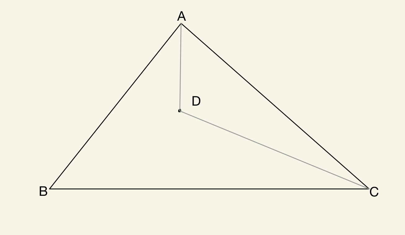 Now we connect the point D and the point A, and at the same time, we connect the point D and the point C. After that, we get a new triangle with three vertices A, D, and C. But there is no points inside the new triangle which contradicts to our assumption. And hence our assumption is false. Therefore the original statement is true.
